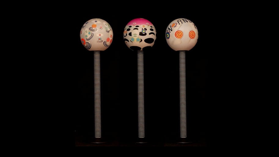 "drei Dimensionszwirbler" drehende Objekte mit Motor, mixed Media 150x45cm 2012